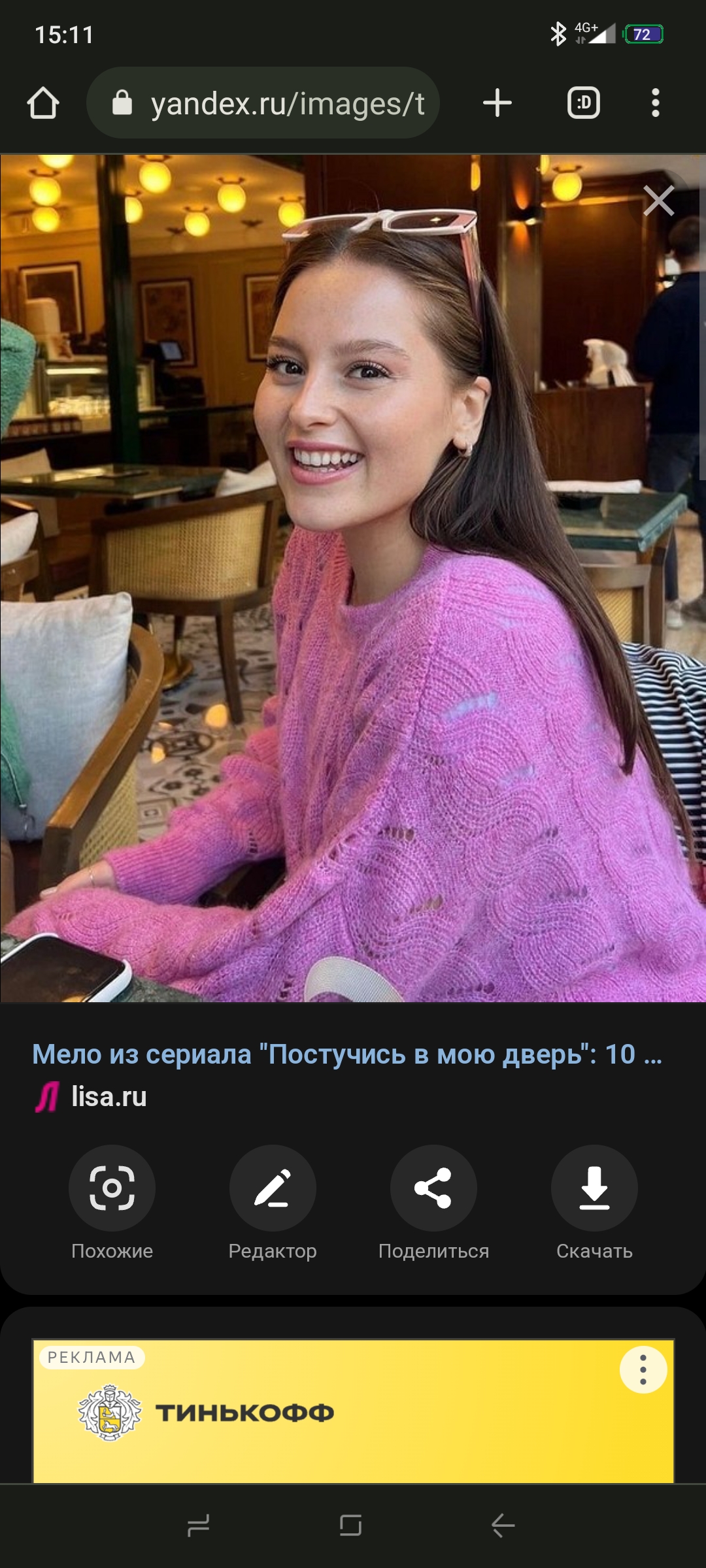 кстати эту актрису кто-нибудь видел в нормальных нарядах под стать ее формам и возрасту, которым не соответствуют 100?100 джинсы да свитер или короткая юбка? в "Постучись мою дверь" она тоже в жутко коротких платьях.