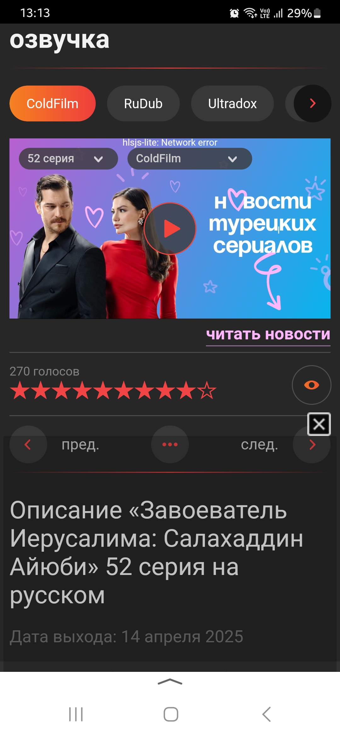 Описание «Завоеватель Иерусалима: Салахаддин Айюби» 52 серия на русском